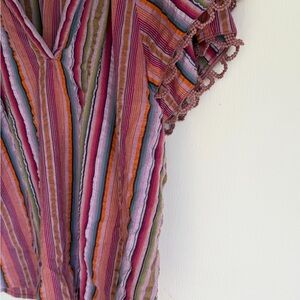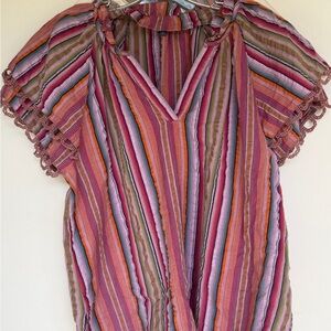 Democracy Striped Pink Multi-Color Boho Flutter Sleeve Top. Petite Medium