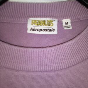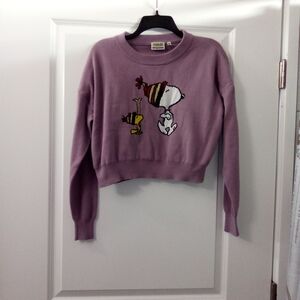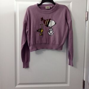 90s Style Aeropostale Lavender Snoopy & Woodstock Cropped Sweater Size Medium
