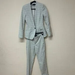 Zara womans Light sage green Plaid Suit Blazer & Trousers size XS