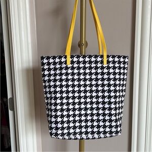 Vers Bradley Hello Yellow Midnight Houndstooth Tote EUC