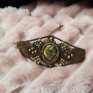 Artisan Brown Macramed Bracelet/Gorgeous, Lg Brecciated Jasper(?) Cabo