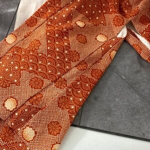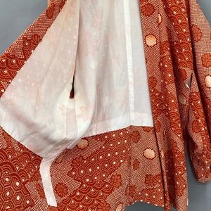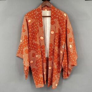 Vintage 60s 70s Orange Floral True Kimono Jacket Textured Hippie Psychedelic Yukata