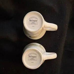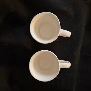 The height of each mug is about 4” with a flared diameter opening of approximately 4 ½”. The handle openings are about 1 ½”. There are no chips, cracks and/or stains anywhere on these mugs. The bottoms show some very slight wear. Overall it they are in very good condition.