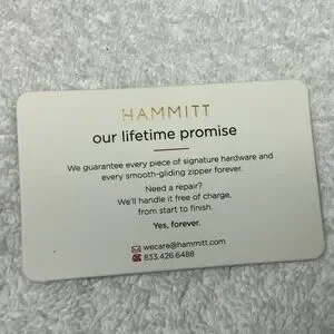 Hammitt has a lifetime guarantee if any hardware or zippers need repair they send you a return shipping label and they repair it for free!