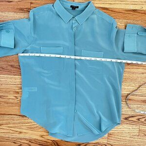 Beautiful Ann Taylor 100% silk blouse in a soft, elegant cornflower blue—a muted medium blue with subtle cool undertones.
