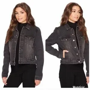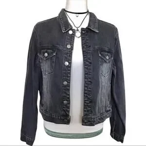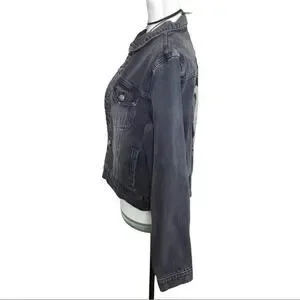 Shadow Fleur de Lis Embellished with Silver Beads Cotton Black Washed Denim jacket