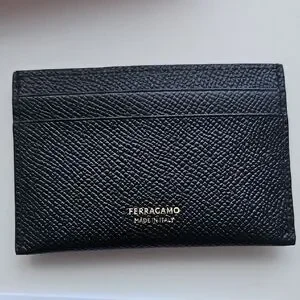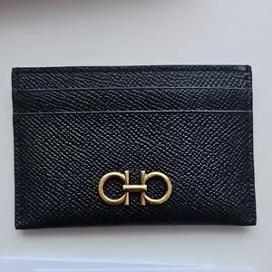 Salvatore Ferragamo Black Card Holder with Gold Accent