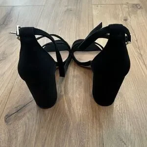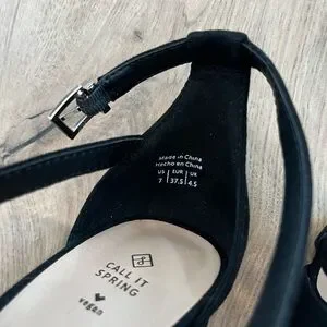 Chic black crisscross ankle-strap heels by Call It Spring. Open-toe design for a sleek look. Cushioned insole for added comfort. Versatile for dressy and evening wear.