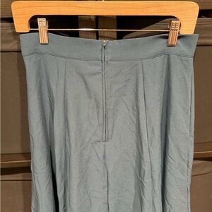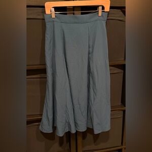 This knee-length A-Line skirt features a solid blue color and a high-rise fit, making it perfect for a variety of occasions.
