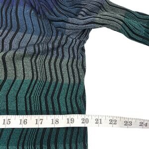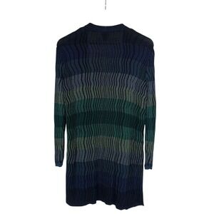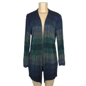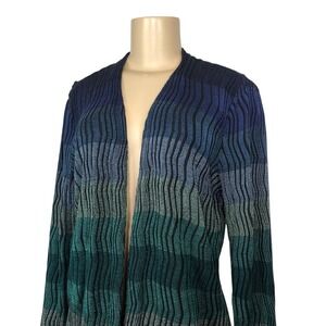 Chico's Chunky Multicolor Ombre Chevron Wave Ribbed Knit Metallic Open Front Cardigan Sweater Size M Blue Turquoise Teal Green