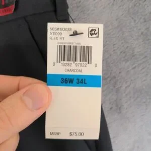 The NWT Van Heusen Dress Pants in Men's size 36x34 offer a stylish and versatile option for various occasions. These gray pants feature a flex straight fit with a flat front design, made from a comfortable cotton blend material with added stretch for ease of movement. The pants have a mid-rise waist and a straight leg style, perfect for a formal or business setting. Easy to care for with machine washable instructions, these pants are a practical and fashionable choice for the modern man.