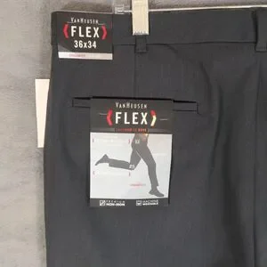NWT Van Heusen Dress Pants Mens 36x34 Gray Flex Straight Fit Stretch Flat Front