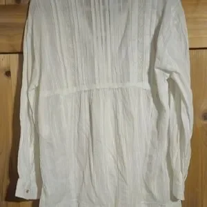 Chic white blouse with textured fabric. Ideal for versatile styling.