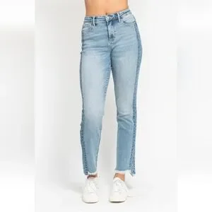 Vintage Wash Side Panel Detail With Fray Hem Slim