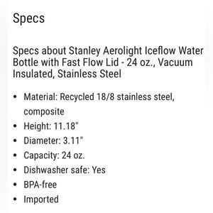 Stanley Aerolight IceFlow H2O Bottle W/ FastFlow Lid, 24 oz. Mint. NEW