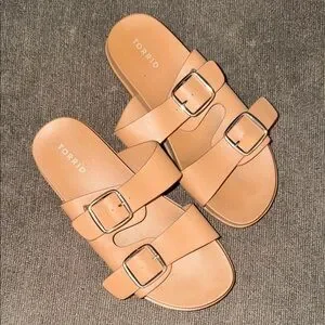 torrid Tan Double-Buckle Slide Sandals with Silver Hardware
