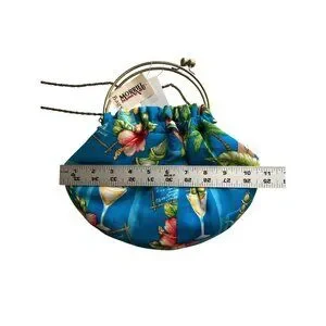 Morrieg Tropical Print Metal Frame Chain Strap Blue Floral Cocktail Design Bag