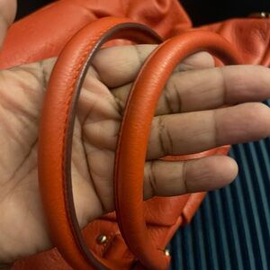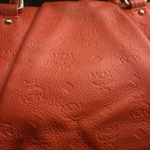 Preloved MCM satchel in vibrant scarlet leather. Features embossed logo and elegant handles. NO CROSS BODY STRAP ‼️ Minor signs of wear at corners and overall in very good condition. Have lots of life left . An aftermarket strap can be purchased.