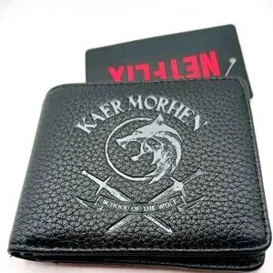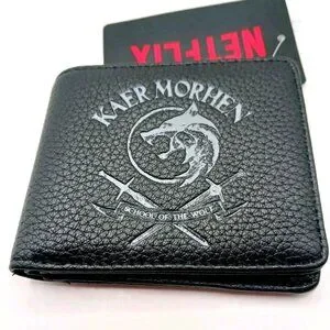 New with Tags Witcher Kaer Morhen Logo Bifold Wallet is a sleek black leather wallet featuring the iconic logo of the popular fantasy series. Designed this wallet is perfect for fans of The Witcher. With its solid black color