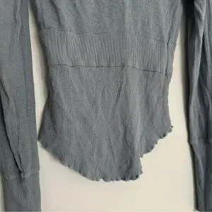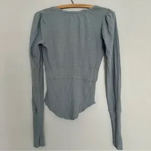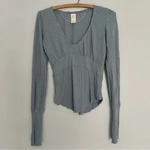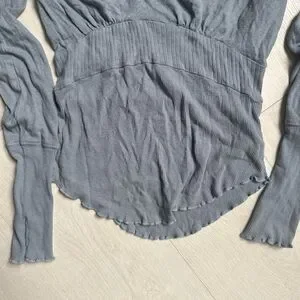 Free People We The Free Blue Cotton Linen Blend V-Neck Empire Waist Top XS