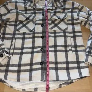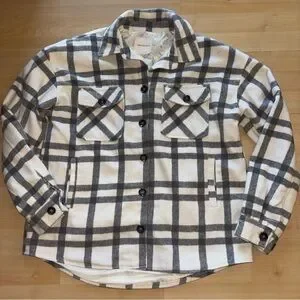 Stay warm and effortlessly stylish with this grey & ivory plaid shirt jacket—perfect for layering through the seasons. Made from a thick, soft, plush fabric and fully lined for extra comfort, this versatile piece works as both a lightweight jacket and a cozy overshirt
