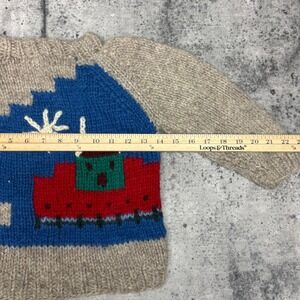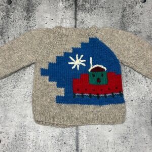 Vtg 80s/90s Handmade Kids Wool Knit Sweater Winter House Snowflake Pullover