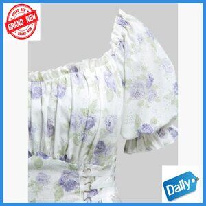Fit: Square neck, ruffled trim, flutter sleeves, lace-up corset bodice, pleated A-line skirt