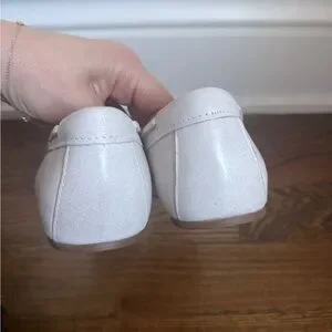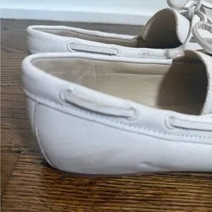 Chic cream loafers by Vince. Sleek design with lace detail. Ideal for casual elegance. please note the right shoe has a little leather damage done by the sticker, barely not accessible, but I wanted to disclose.