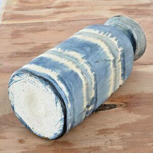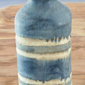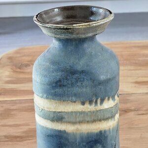 Drip glaze, blue, tan & grey layered Handcrafted studio art pottery vase