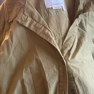 Stylish mustard dress with ruffle detail. Button-up design. Elegant long sleeves.