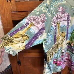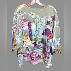 Vintage Y2K Womens XL New York Cityscape Beaded Embellished 3/4 Sleeve Top Shirt