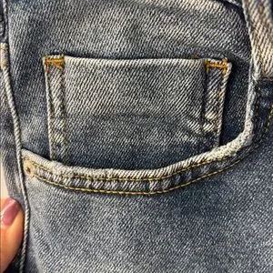 -intentionally distressed slightly at front pockets and also at bottom of jeans
