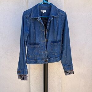 Cherokee Blue Jean Jacket with Pink Floral Embroidery