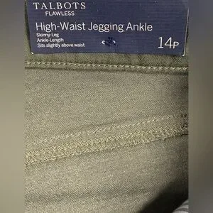 Talbots High Waist Jegging Pants Size 14P Green Stretch Ankle Skinny Casual NWT