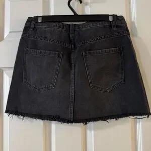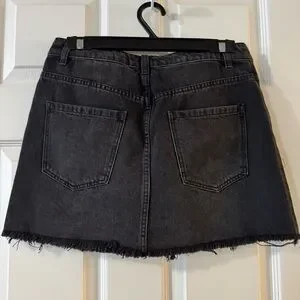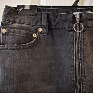 We the Free Black Cotton Denim Frayed Hem Mini Goth Whimsical Skirt Fringed 28