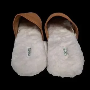 Haven Well Within Leather Brown Slippers Faux-Fur Lining Slides Women Size 9