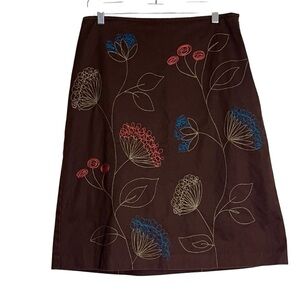 Boden Brown Multi Color Embroidered Floral A-Line Skirt Women’s 8L