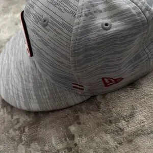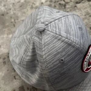 Stylish gray hat with San Francisco logo. Features subtle stripe pattern. Perfect for fans.