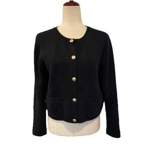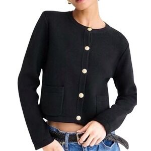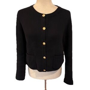 J.Crew Emilie Patch Pocket Lady Jacket Cardigan Black Gold Button BQ197 Sz M