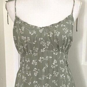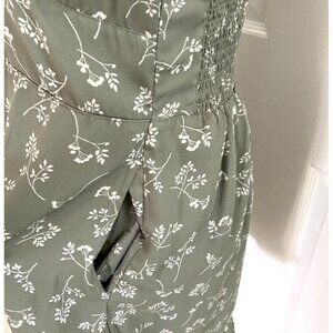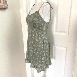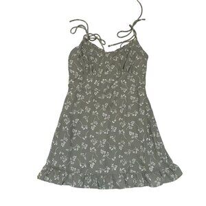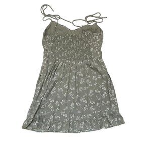 Abercrombie & Fitch Sage Green Floral Shoulder Tie Mini Dress Pockets Size Med