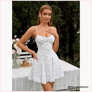 White Floral A-Line Mini Dress Sweetheart Neck Spaghetti Strap Zipper Back