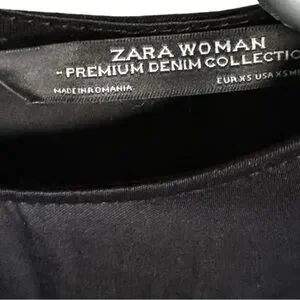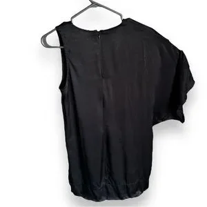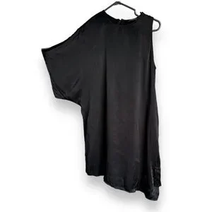 ZARA WOMAN Black Satin Asymmetrical Short Sleeve One Shoulder Midi Dress
