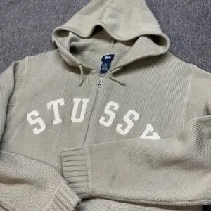 Wrap yourself in cozy comfort with this Stussy knit hoodie. The classic Stussy lettering across the chest adds a touch of iconic streetwear style to this versatile piece. Designed with a full zip closure and a comfortable hood, it's perfect for layering on cooler days. Imagine this hoodie as your go-to for casual outings, weekend adventures, or relaxed evenings at home.