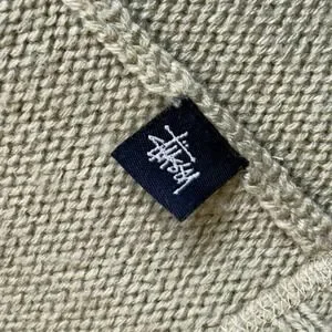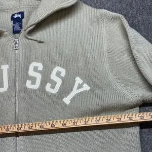 VTG Stussy Wool Blend Chunky Knit Full Zip Hoodie Sweater Mens L Baggy Y2K Skate
