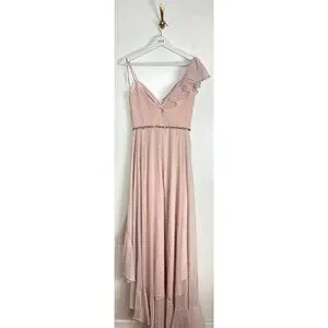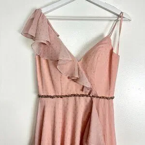 MAC DUGGAL Polka Dot Asymmetrical Ruffle Gown in Salmon Size US 2