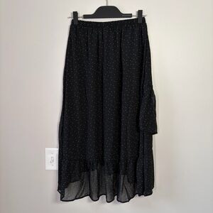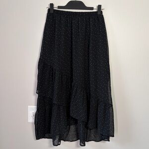 A New Day Black Polka Dot Ruffle Midi Skirt