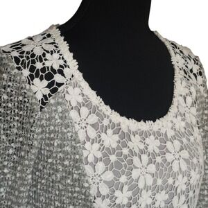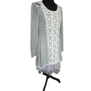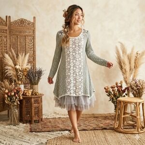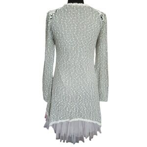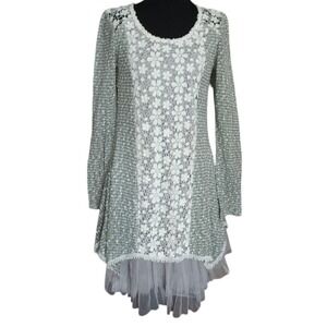 Ryu Sage Green Lace Tulle Hem Tunic Dress Long Sleeve Floral Mixed Media Small