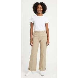 Lands' End Cream Khaki Chino Pants Size 6P Petite Button Tab Cuff Trouser