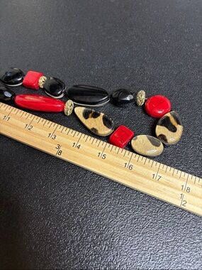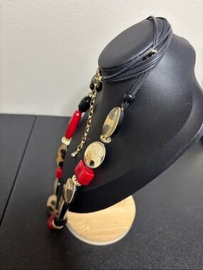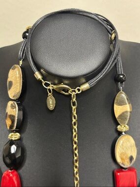 Chico’s Long Chunky Leopard Animal Print Statement Necklace Red Gold