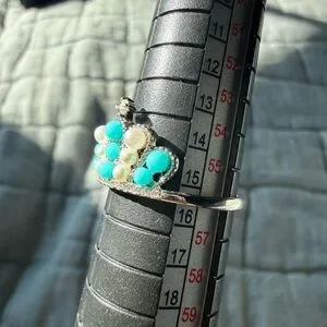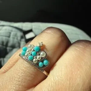 NEW! Pretty Bird Jewelry Turquoise and Faux Pearl Crown Ring